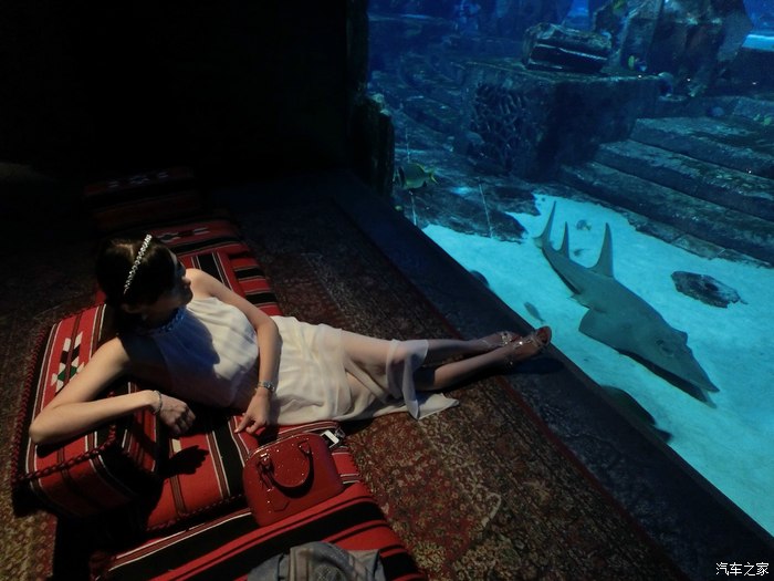住客可以躺在舒服的波斯地毯上静静欣赏水族馆里的海洋生物