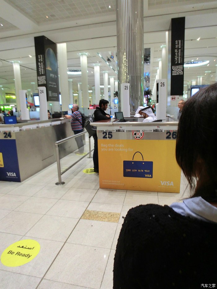 终于到啦!前方白袍阿拉伯帅哥正在进行世界上最先进的虹膜扫描,是全世界联网的,一旦发现有犯罪记录,立刻驱逐出境,永远不得入境,所以迪拜也是世界上最安全的地区,在这里绝对没有盗抢事件。
