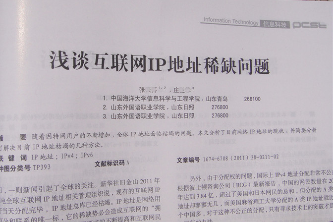 68、《浅谈互联网IP地址稀缺问题》--《科技信息》2011年第4期