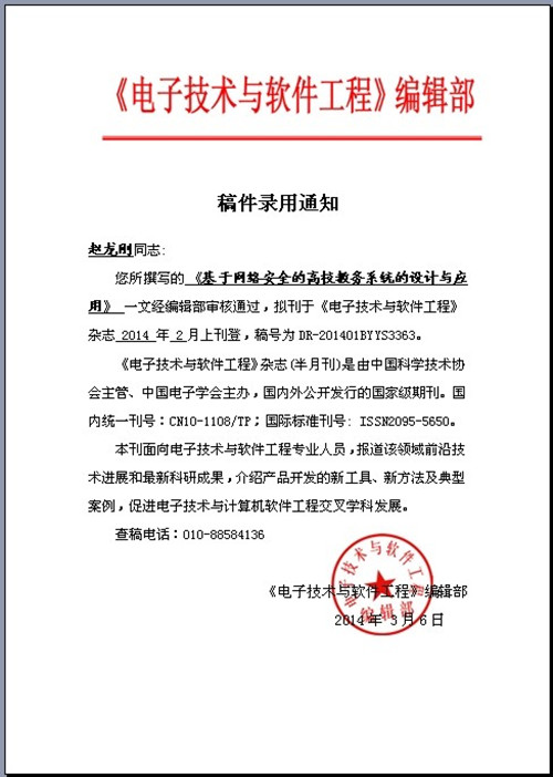 下一篇:《高职计算机三大教学方式的探讨》录用通知书