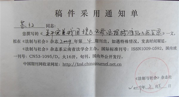 《法制与社会》通知书:关于完善我国提起公诉
