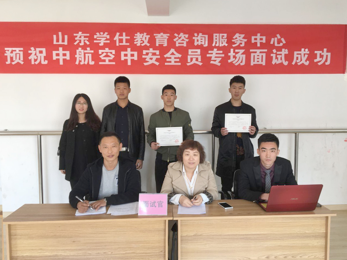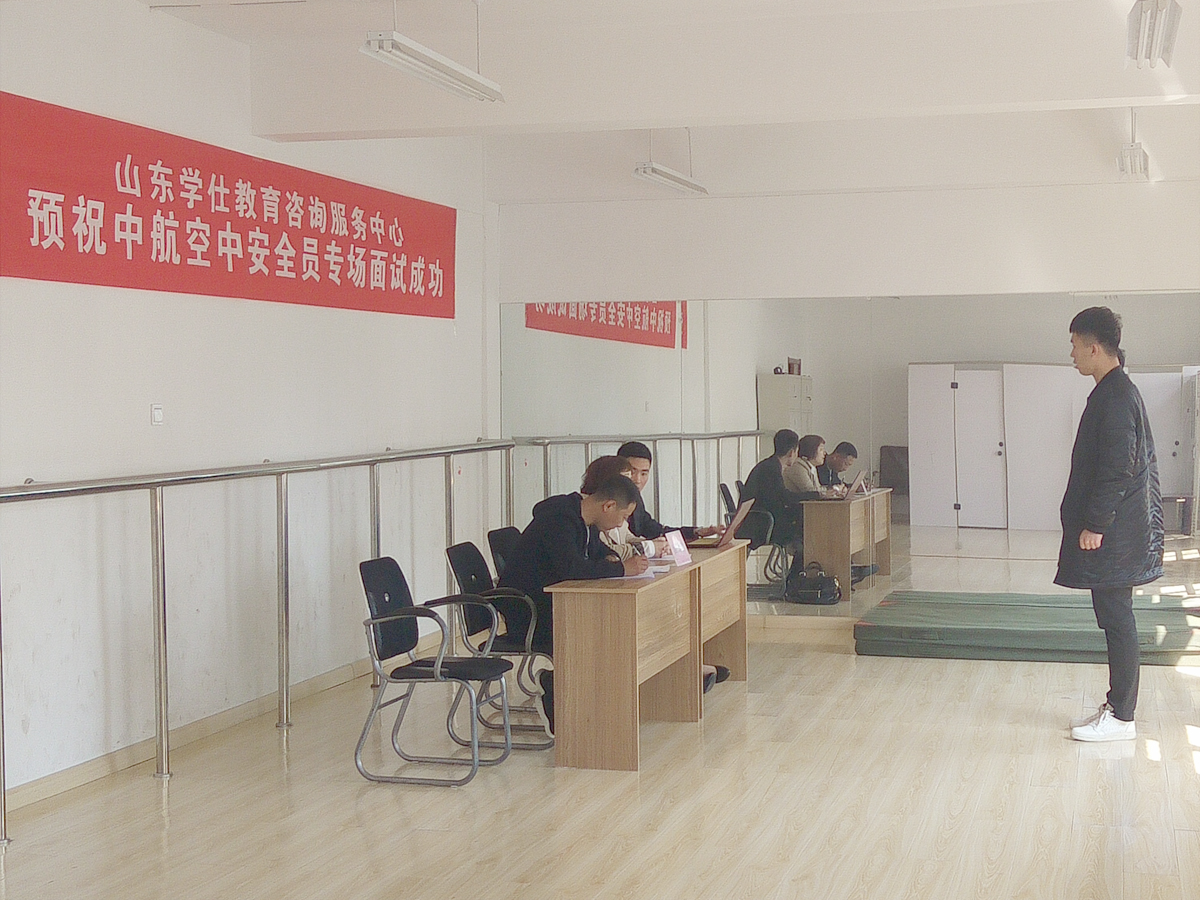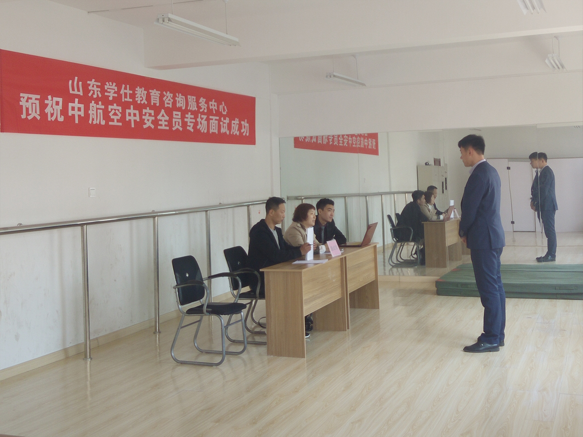 由山东学仕教育咨询服务中心举办的“山东学仕教育”第二期中航空中安全员、机务维修工程师面试于2017年3月17日取得圆满成功!参加本次面试的人员均为日照市东港区退伍军人,共有41人参加,12人当场获得录用通知书。